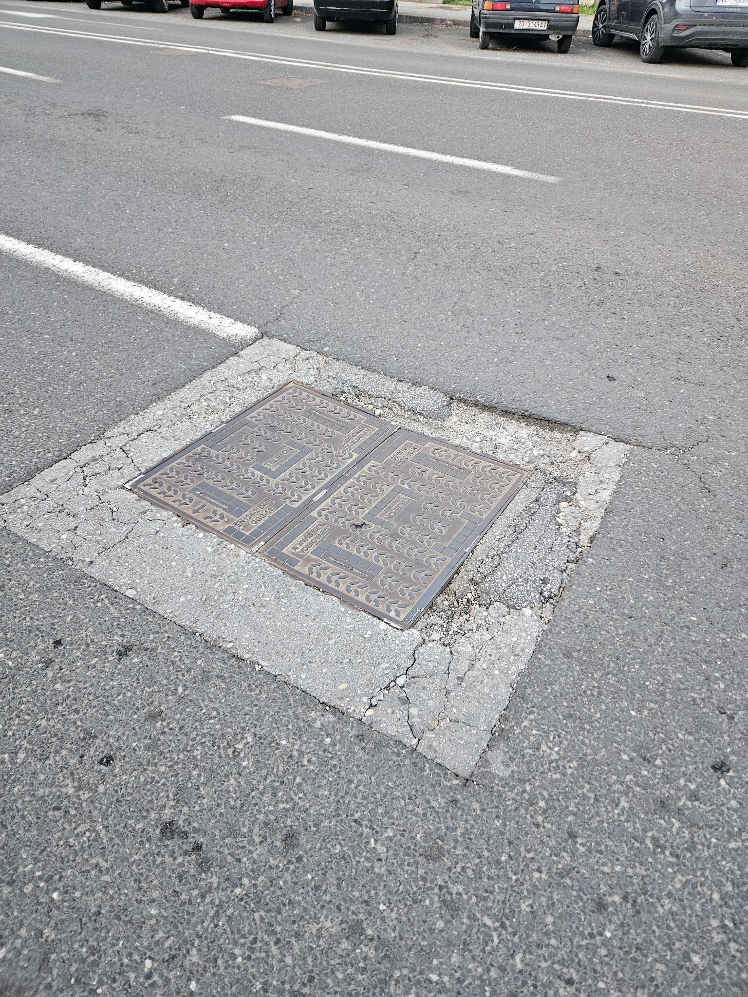 Rupa oko šahte koja nije u ravnini s cestom, a još je i na raskršću, tisuće automobila tu prođe dnevno. Vozači već uredno usporavaju na toj dionici jer ima ogromna rupa i na šahti 5 metara nakon pa to utječe i na protočnost prometa. A obje šahte se ne daju izbjeć jer su na poziciji kola.